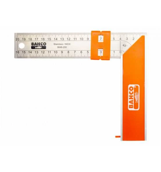 - Zimmermannswinkel mit zusätzlicher Schiebemarkierung auf der Messskala zum einfachen Markieren sich wiederholender Maße
