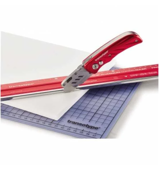 Einzigartig durch seine Signalfarbe. Pulverbeschichtet · zum schnellen Wiederfinden auf überfüllten Arbeitstischen. Jetzt mit Stahl-Schneidekante und selbst entwickeltem · extra-breitem 50 mm-Aluminium-Profil. Durch die enorme Breite und das höhere Gewicht ist es ultra-stabil und lässt sich weder verbiegen noch verdrehen. Mit rutschfester Gummierung auf der Rückseite · ermöglicht es dir präzises und schnelles arbeiten. Die Schneidekante mit geradem Rücken lässt dich die Klinge deines Cutters absolut gerade über das Papier führen und garantiert so den exakten Schnitt.