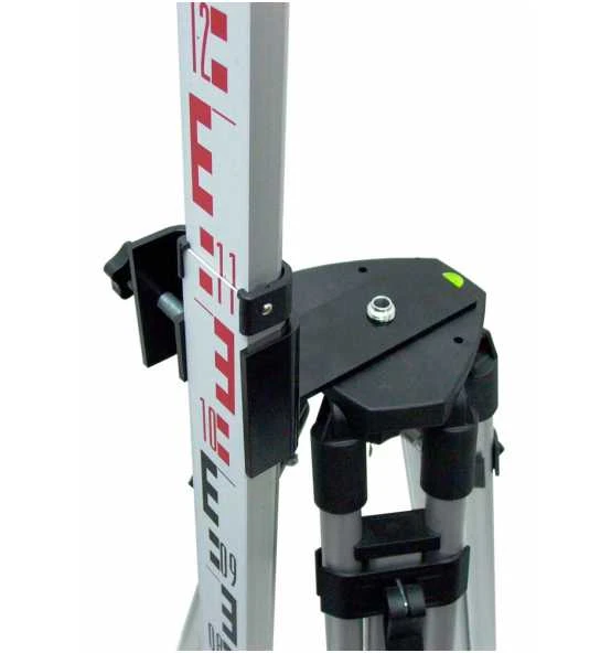 Mit dem Stativadapter für Messlatten können Sie die Nivellierlatte am Stativ befestigen. Der Stativadapter ist ideal dazu geeignet, wenn die Latte einen sicheren Stand auf einem fixen Punkt haben soll.