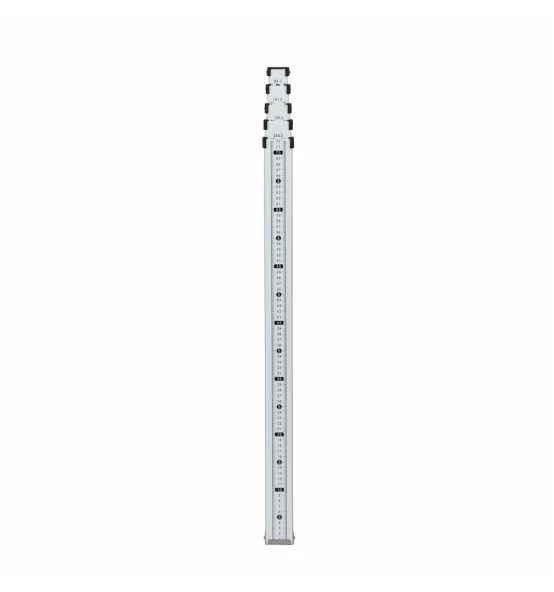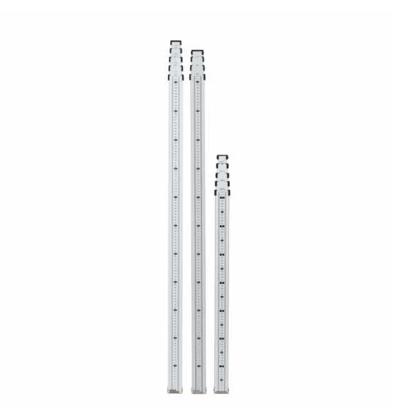 Der Teleskopmeter TELEMAT eignet bestens zum Messen von lichten Höhen wie Dachvorsprüngen etc. Die Teleskopmeter sind, je nach Modell, bis zu einer Höhe von 5 m teleskopartig ausziehbar und lassen sich dadurch komfortabel und platzsparend transportieren. Die mm-Teilung auf der Vorderseite misst von oben nach unten. Entnehmen Sie Einzelheiten bitte den technischen Daten. Der Aufdruck ist durch überstehende Kanten vor Abrieb geschützt. Die stabile Druckknopfrasterung verhindert ein Zusammensacken der Teile.